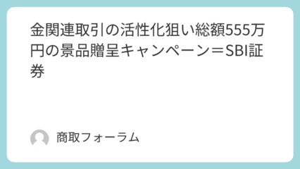 金関連取引の活性化狙い総額555万円の景品贈呈キャンペーン=SBI証券