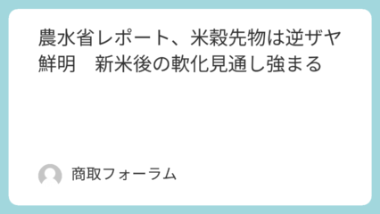 農水省レポート、米穀先物は逆ザヤ鮮明 新米後の軟化見通し強まる
