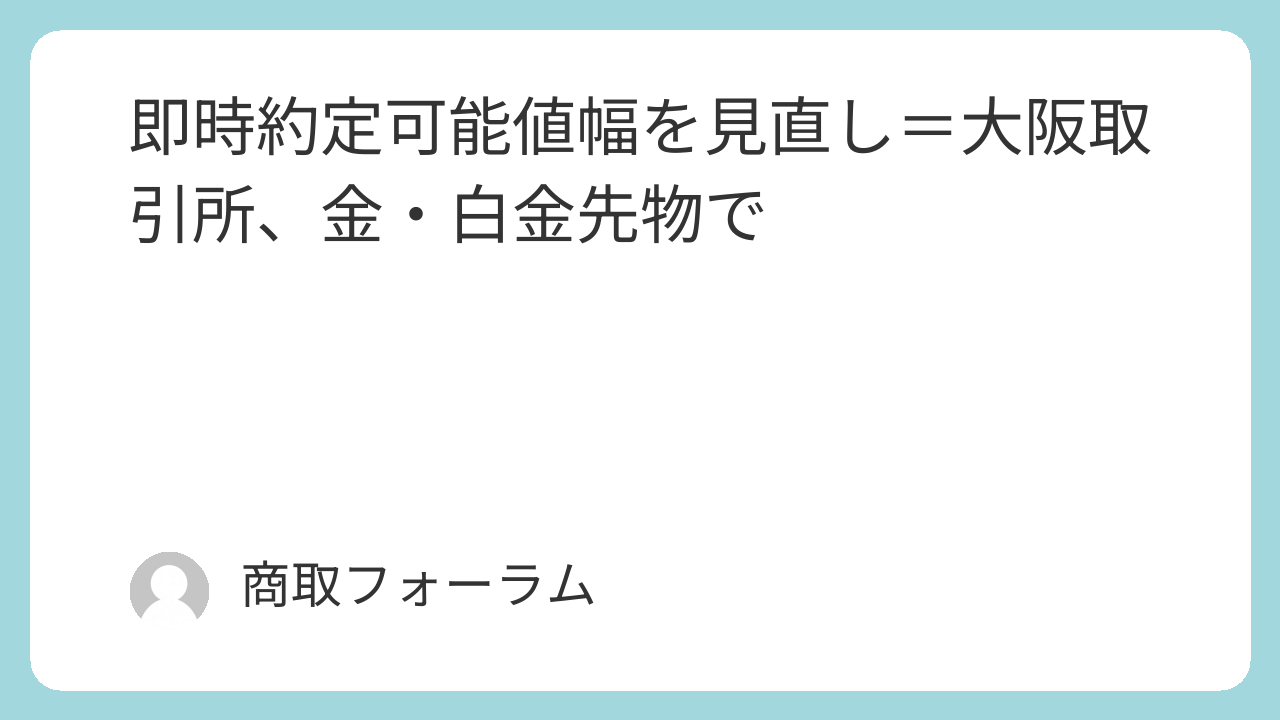即時約定可能値幅を見直し=大阪取引所、金・白金先物で