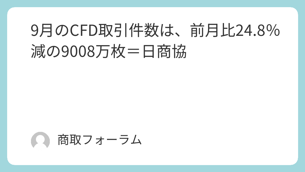日本商品先物取引協会がまとめた2025年9月の店頭商品CFD取引の取引件数は、前月比24.8%減の9008万4834枚だった。