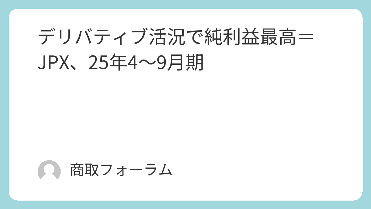 日本取引所グループ(JPX)が29日発表した2025年4〜9月期の連結決算は、純利益が前年同期比6.9%増の345億円となり、上半期として過去最高を更新した。世界的な金融引き締めや地政学リスクの高まりを背景にデリバティブ取引が活況を呈したほか、堅調な株式相場も収益を押し上げた。