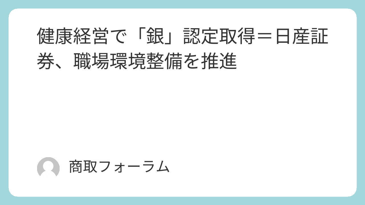 日産証券は、健康保険組合連合会東京連合会から「健康優良企業『銀の認定』」を取得した。社員を重要な経営資本と位置づけ、企業全体で健康づくりを推進してきた成果が認められた形だ。