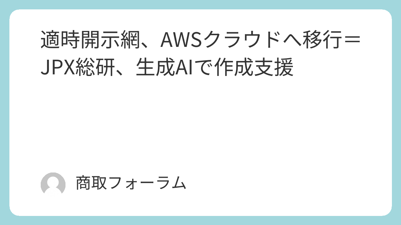 日本取引所グループ(JPX)傘下のJPX総研は5日、適時開示情報伝達システム(TDnet)をアマゾン・ウェブ・サービス(AWS)のクラウド基盤へ移行すると発表した。生成AIによる開示資料の作成支援も手掛け、金融・情報基盤の高度化を急ぐ。