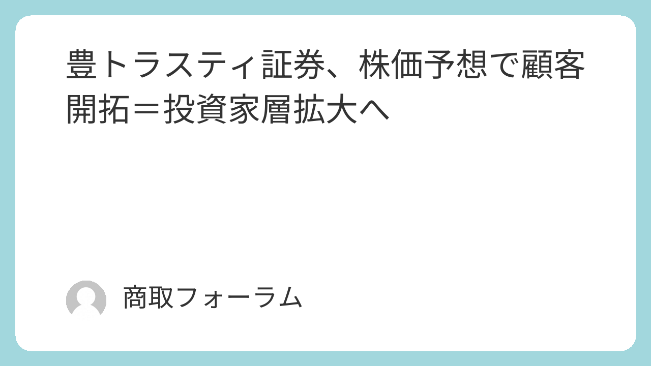 豊トラスティ証券、株価予想で顧客開拓=投資家層拡大へ