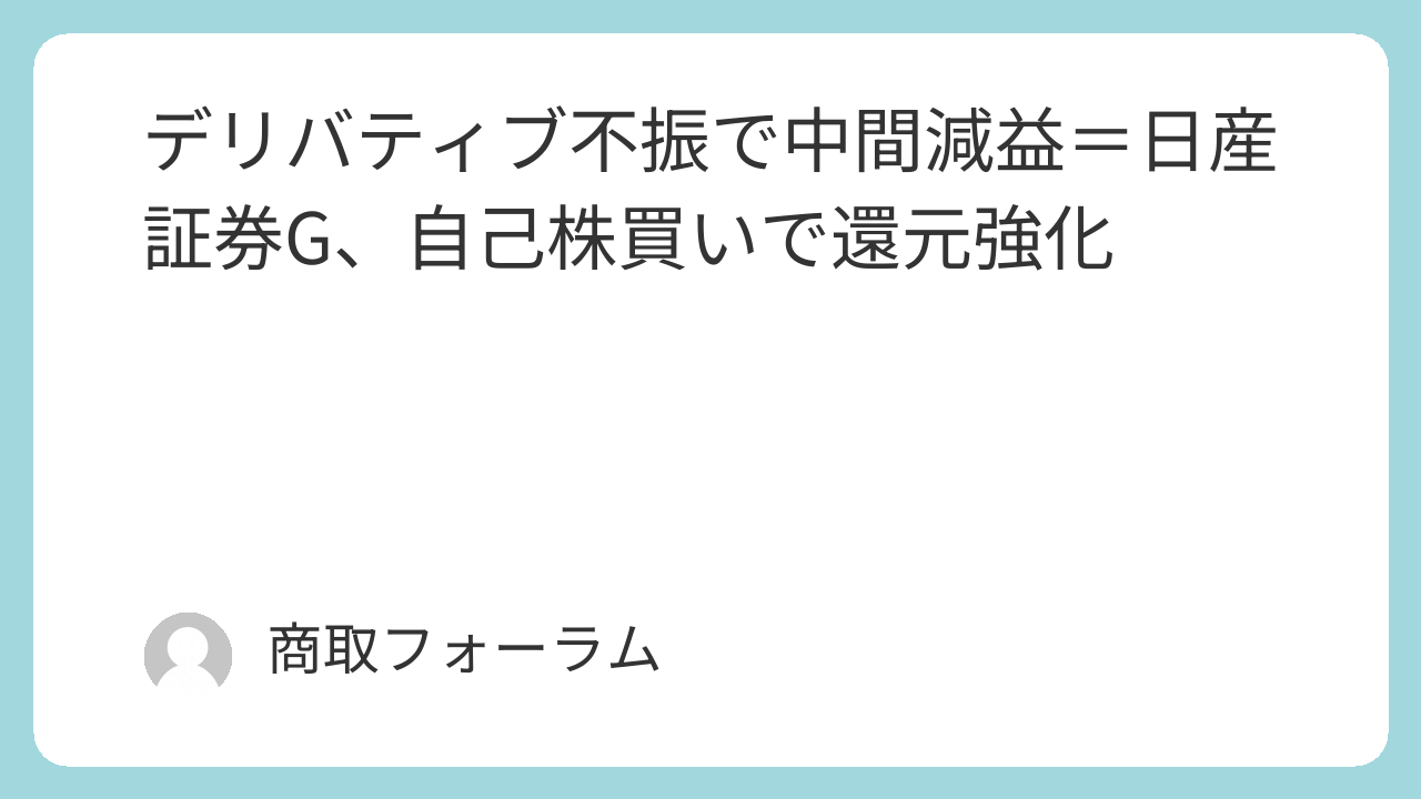 日産証券グループが12日発表した2026年3月期の中間連結決算は、純営業収益が前年同期比6.2%減の37億2300万円、純利益は4.2%減の3億8000万円だった。主力のデリバティブ取引が落ち込み減収減益となった。一方、自己株式取得で株主還元を強化する。