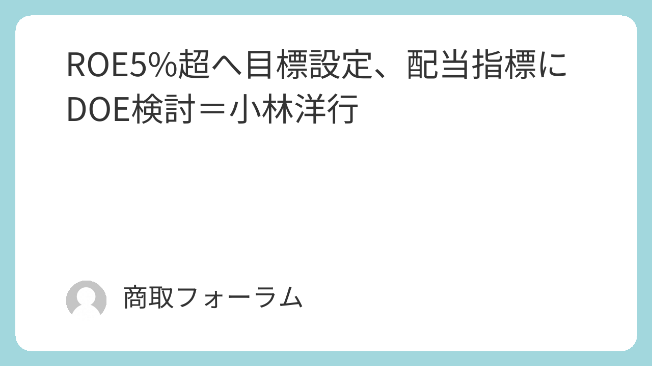 小林洋行は11月27日、資本効率の改善策を発表した。ROE(自己資本利益率)を5%以上に高める目標を掲げた。配当指標としてDOE(株主資本配当率)の導入を検討する。低迷する株価の再評価を促す。
