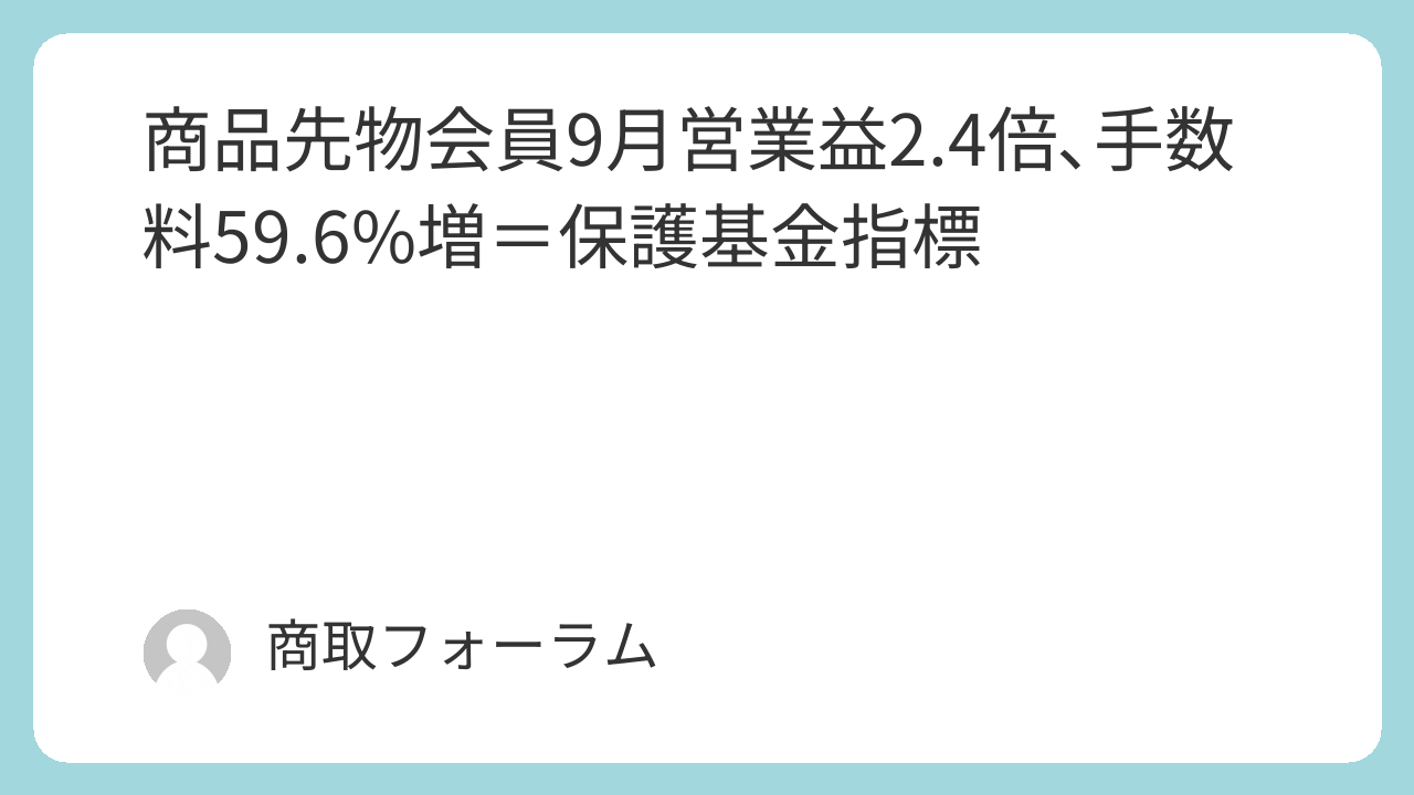 日本商品委託者保護基金が公表した会員主要指標によると、商品先物取引業者ら会員企業の2025年9月の営業損益は104億2400万円の黒字だった。前月から約2.4倍(144.8%増)に急拡大した。相場変動を背景に顧客取引が活発化し、受取手数料が59.6%増と大幅に伸びたことが寄与した。委託者からの預かり資産も2割近く増加しており、投資家の資金流入が続いている。