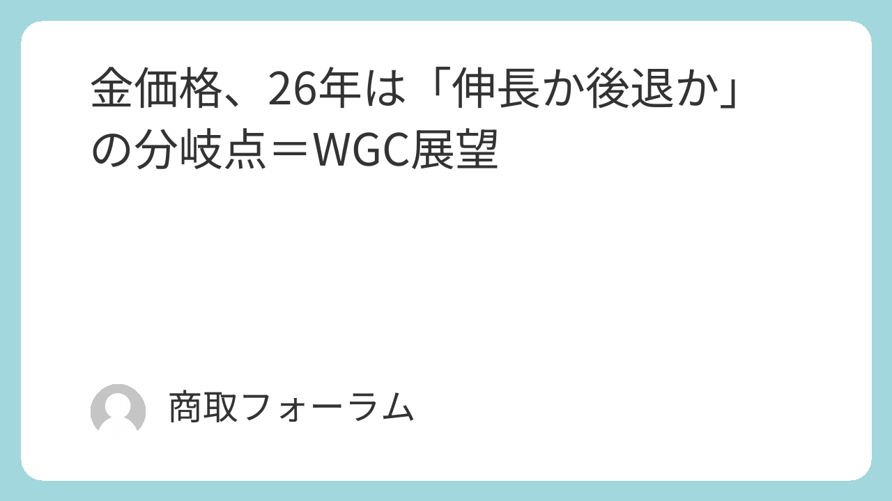 ワールド・ゴールド・カウンシル(WGC)が公表した2026年の市場展望『Gold Outlook 2026』は、歴史的な高騰を見せた金相場が重大な岐路に立っていることを示唆した。2025年は年間で60%を超える上昇を記録したが、26年は市場環境次第で「さらなる伸長(Push ahead)」か「後退(Pull back)」か、方向性が大きく分かれる。基本シナリオは横ばい圏内だが、リスクシナリオの振れ幅は最大30%の上昇から20%の下落まで広がっており、投資家にとって極めて難解な一年になりそうだ。