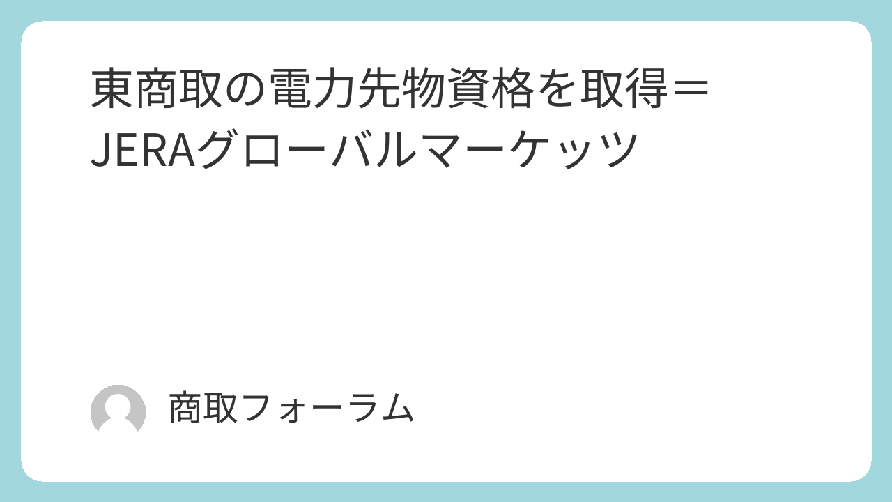 東京商品取引所は15日、JERAグローバルマーケッツに電力先物市場の取引参加資格を付与したと発表した。同社はJERAと英EDFトレーディングの合弁グループに属し、国内電力市場の流動性向上と透明性の高い価格形成を目指す。