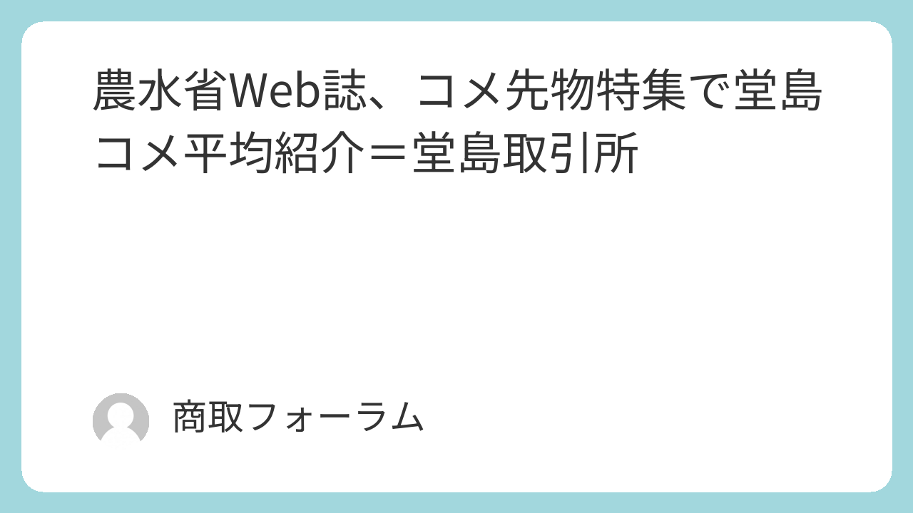 記事では24年8月開始の米の指数先物について解説した。堂島コメ平均は同取引の基準となる指標。生産者や実需家にとって、経営の安定化に資するツールとしての側面を強調した内容だ。