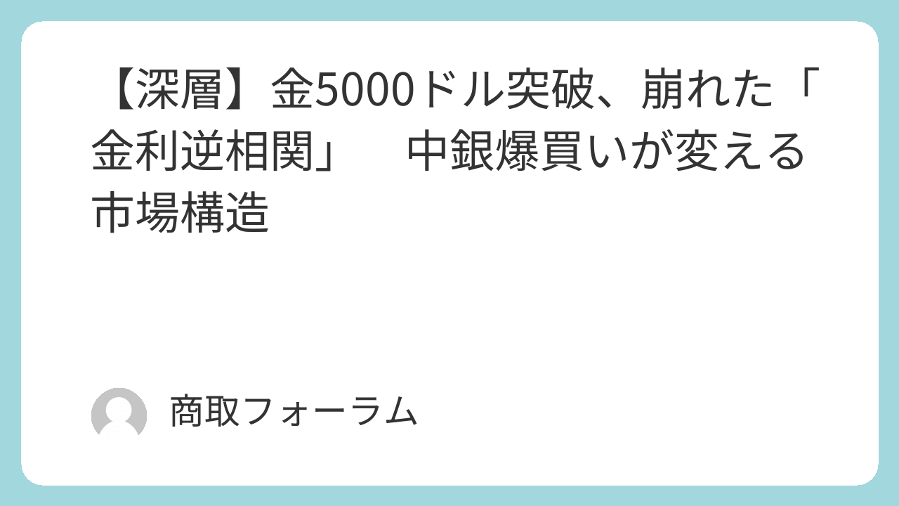 5000ドルは通過点に過ぎない。中央銀行による「年間1000トンの岩盤需要」が市場規律を根本から破壊し、歴史的な有事需要とは質的に異なる「通貨としての金需要」が定着した。FRBの金融政策も、中銀の構造需要の前ではもはや「下落トリガー」ではなく「上昇増幅器」に転換した。