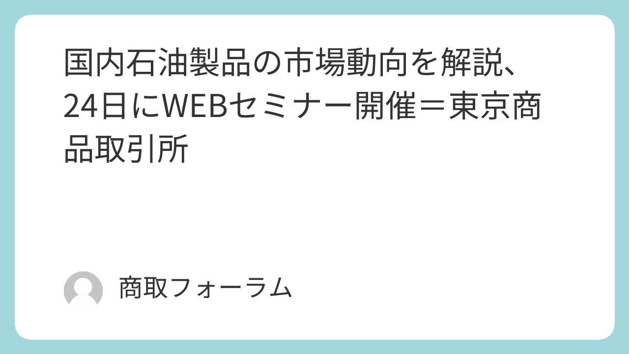 東京商品取引所は3月24日、国内石油製品市場の現状と今後の動向を解説するオンラインセミナーを開催する。石油製品補助金政策の終了や暫定税率の廃止といった環境変化を踏まえ、2025年度の総括と26年度に向けた市場展望を提示する。