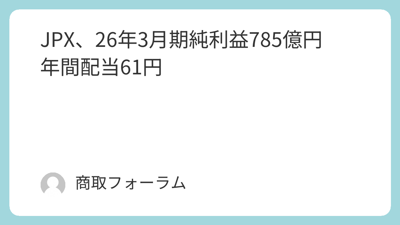 日本取引所グループ(JPX)は3月25日、2026年3月期の連結純利益が前回予想比20.8%増の785億円になる見通しだと発表した。活発な株式市況を背景に売買代金が想定を上回る。業績改善に伴い、年間配当予想も前回から11円増の61円(前期は45.5円)へ引き上げた。