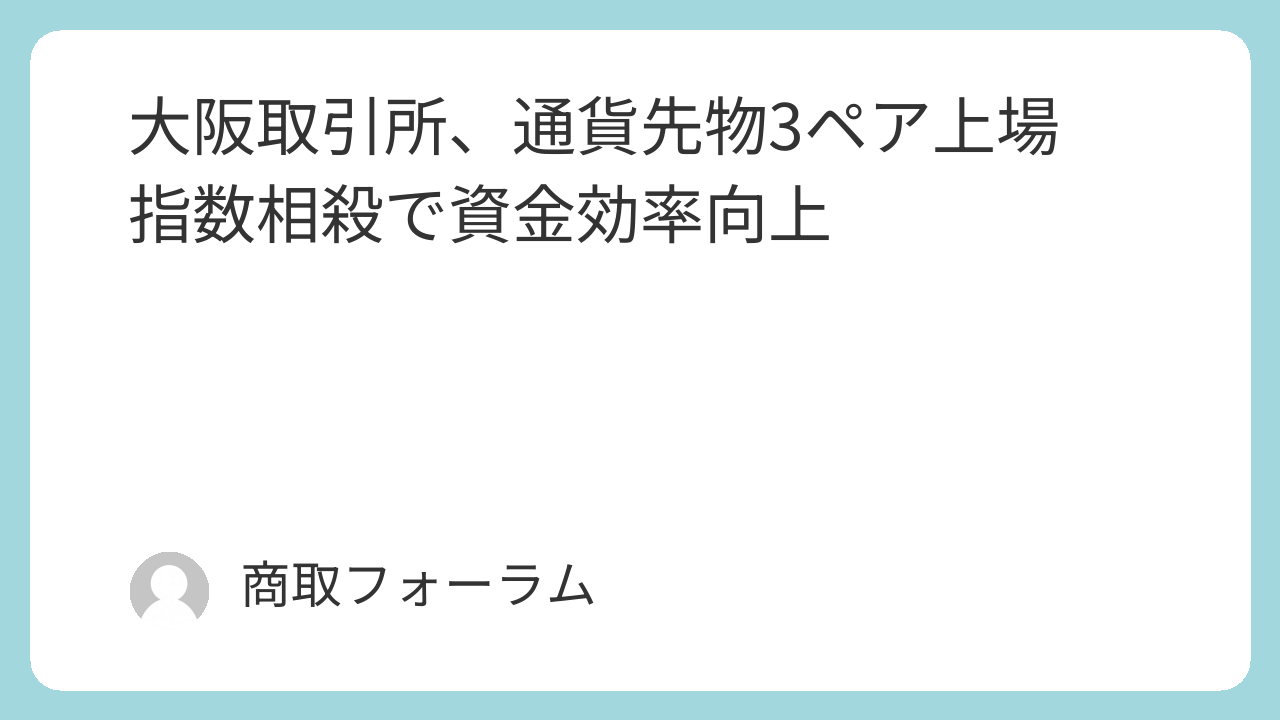 大阪取引所(OSE)は2026年4月13日、米国ドル/日本円先物、中国オフショア人民元/日本円先物、ユーロ/日本円先物の3通貨ペアを上場する。日本取引所グループの中期経営計画2027における「総合プラットフォーム化」の主要施策であり、社会全体のリスク配分の最適化や、資産運用立国の実現を目指す。日経225先物や金先物で海外投資家比率が高いOSEには、アジアのヘッジファンド等から円エクスポージャーを同一市場内でヘッジする「ワンストップ」の取引ニーズが強まっていた。現行のCME(シカゴ・マーカンタイル取引所)通貨先物はドル建てのため、値洗いに現物ドルを要する点や逆数表示の不便さ、終値の時差による期末評価の不都合が指摘されてきた。OSEでの上場により証拠金を円で預託でき、「1ドル149.XX円」という直感的な表記が可能となるほか、清算値段の時差を解消しファンド評価のズレを防ぐ。
