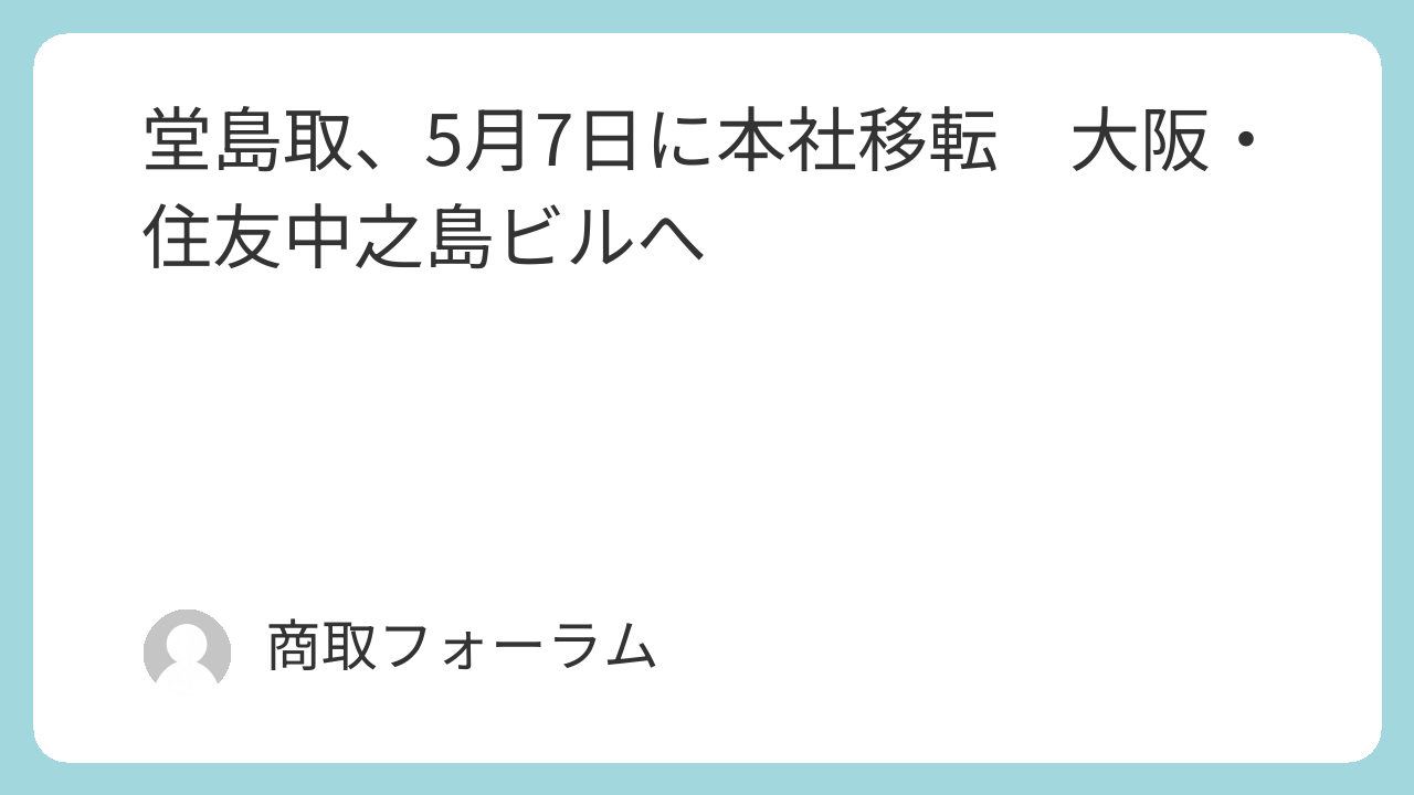 堂島取、5月7日に本社移転 大阪・住友中之島ビルへ