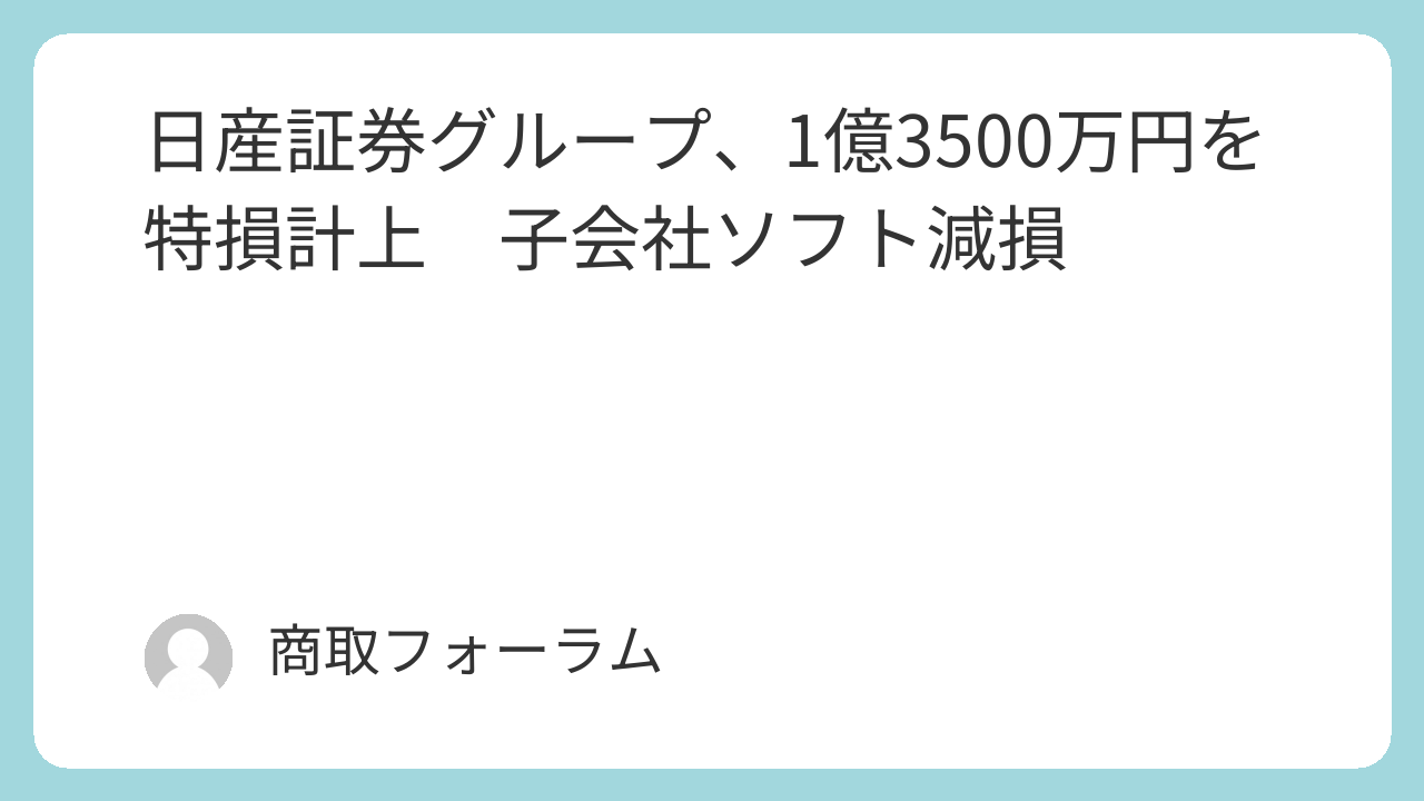 日産証券グループは15日、連結子会社の日産証券が2026年3月期第4四半期に固定資産の減損損失1億3500万円を特別損失として計上すると発表した。同日の取締役会で決議した。