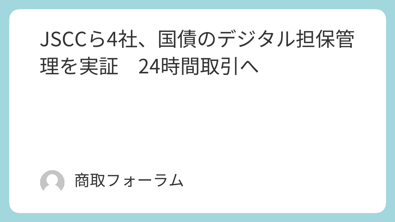 日本証券クリアリング機構(JSCC)、みずほフィナンシャルグループ、野村ホールディングス、Digital Asset Holdingsの4社は20日、日本国債(JGB)を活用したデジタル担保管理の共同実証を開始した。ブロックチェーン「Canton Network」を活用し、24時間365日のリアルタイムなクロスボーダー担保取引の実現を目指す。