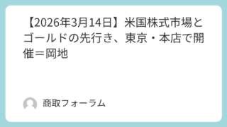 【2026年3月14日】米国株式市場とゴールドの先行き、東京・本店で開催=岡地