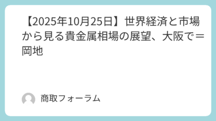 セミナー・イベント 【2025年10月25日】世界経済と市場から見る貴金属相場の展望、大阪で=岡地 岡地は10月25日、大阪市西区の堂島取引所で「世界経済と市場から見る貴金属相場の展望」セミナーを開催... 2025.10.02 セミナー・イベント