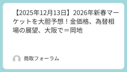 【2025年12月13日】2026年新春マーケットを大胆予想!金価格、為替相場の展望、大阪で=岡地