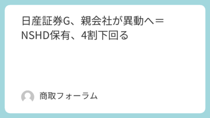 日産証券G、親会社が異動へ=NSHD保有、4割下回る