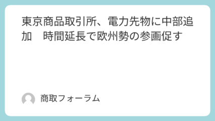 東京商品取引所、電力先物に中部追加 時間延長で欧州勢の参画促す