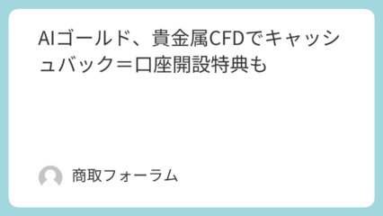 AIゴールド、貴金属CFDでキャッシュバック=口座開設特典も