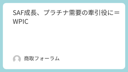 マーケット動向 SAF成長、プラチナ需要の牽引役に=WPIC プラチナ需要に大きな構造変化が生まれようとしている。ワールド・プラチナム・インベストメント・カウンシ... 2025.11.12 マーケット動向白金(PLATINUM)
