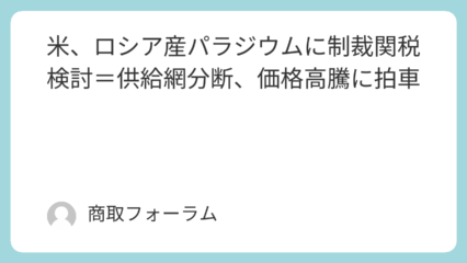 マーケット動向 米、ロシア産パラジウムに制裁関税検討=供給網分断、価格高騰に拍車 米鉱山大手がロシア産パラジウムの不当廉売を訴え、米政府が制裁関税を検討している。地政学リスクが貴金属... 2025.10.18 マーケット動向白金(PLATINUM)