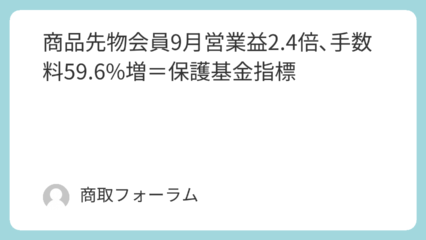 業界ニュース 商品先物会員9月営業益2.4倍、手数料59.6%増=保護基金指標 日本商品委託者保護基金が公表した会員主要指標によると、商品先物取引業者ら会員企業の2025年9月の営... 2025.12.10 業界ニュース行政・業界団体