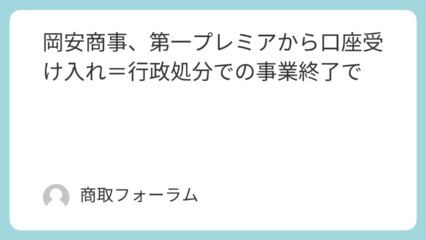 岡安商事、第一プレミアから口座受け入れ=行政処分での事業終了で