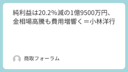 純利益は20.2%減の1億9500万円、金相場高騰も費用増響く=小林洋行