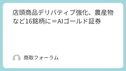 AIゴールド証券、くりっく365手数料無料化=くりっく株365も大幅引き下げ