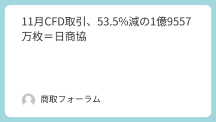11月CFD取引、53.5%減の1億9557万枚=日商協