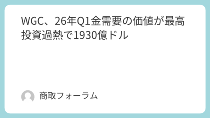WGC、26年Q1金需要の価値が最高 投資過熱で1930億ドル