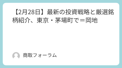 セミナー・イベント 【2月28日】最新の投資戦略と厳選銘柄紹介、東京・茅場町で=岡地 岡地は2026年2月28日、東京・茅場町の同社本店で「最新の投資戦略と厳選銘柄紹介(東京)」を開催す... 2026.01.20 セミナー・イベント