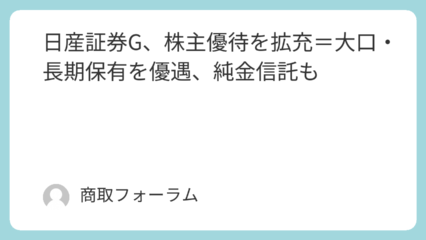 日産証券G、株主優待を拡充=大口・長期保有を優遇、純金信託も