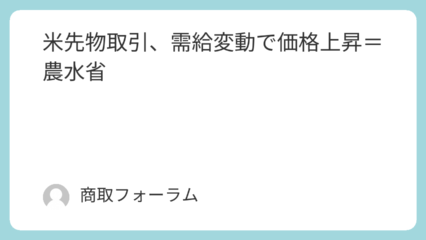 農林水産省は9月26日、米先物取引に関するシーズンレポートを公表した。国内外の需給動向や天候変化が価...