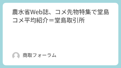 農水省Web誌、コメ先物特集で堂島コメ平均紹介=堂島取引所