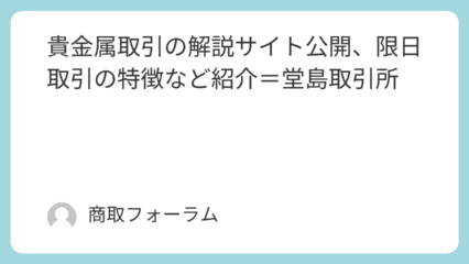 貴金属取引の解説サイト公開、限日取引の特徴など紹介=堂島取引所