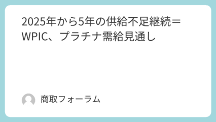 マーケット動向 2025年から5年間、平均62万オンスの供給不足継続=WPIC、プラチナ需給見通し ワールド・プラチナム・インベストメント・カウンシル(WPIC)は2025年から2029年にかけ、プラ... 2025.10.02 マーケット動向白金(PLATINUM)