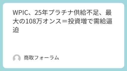 マーケット動向 プラチナ、需給逼迫の構図続く=WPIC、26年均衡予測も不確実性 ワールド・プラチナム・インベストメント・カウンシル(WPIC)は19日、2025年第3四半期版の報告... 2025.11.19 マーケット動向白金(PLATINUM)