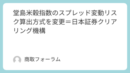 日本証券クリアリング機構(JSCC)は16日、堂島米穀指数グループにおけるスプレッド変動リスク(限月...