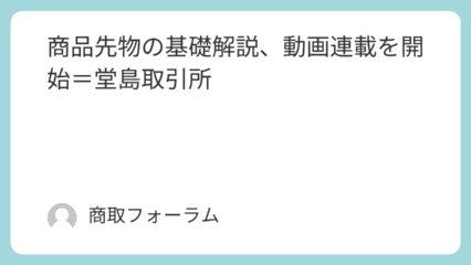 取引所 商品先物の基礎解説、動画連載を開始=堂島取引所 堂島取引所は10日、商品先物取引の仕組みを解説する動画の連載を動画投稿サイト「ユーチューブ」で始めた... 2025.12.15 取引所業界ニュース