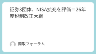 証券3団体、NISA拡充を評価=26年度税制改正大綱